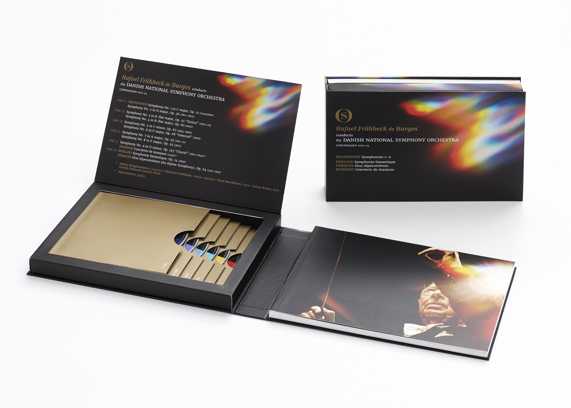 Boksen udkommer på DR SymfoniOrkestrets eget pladeselskab DRS, som distribueres af Dacapo Records, og indeholder alle Beethovens ni symfonier samt tre andre orkesterværker: Hector Berlioz’ Symphonie Fantastique, Rodrigos Concierto de Aranjuez og Richard Strauss’ Eine Alpensinfonie – sidstnævnte optaget ved Frühbeck de Burgos’ allersidste koncert.