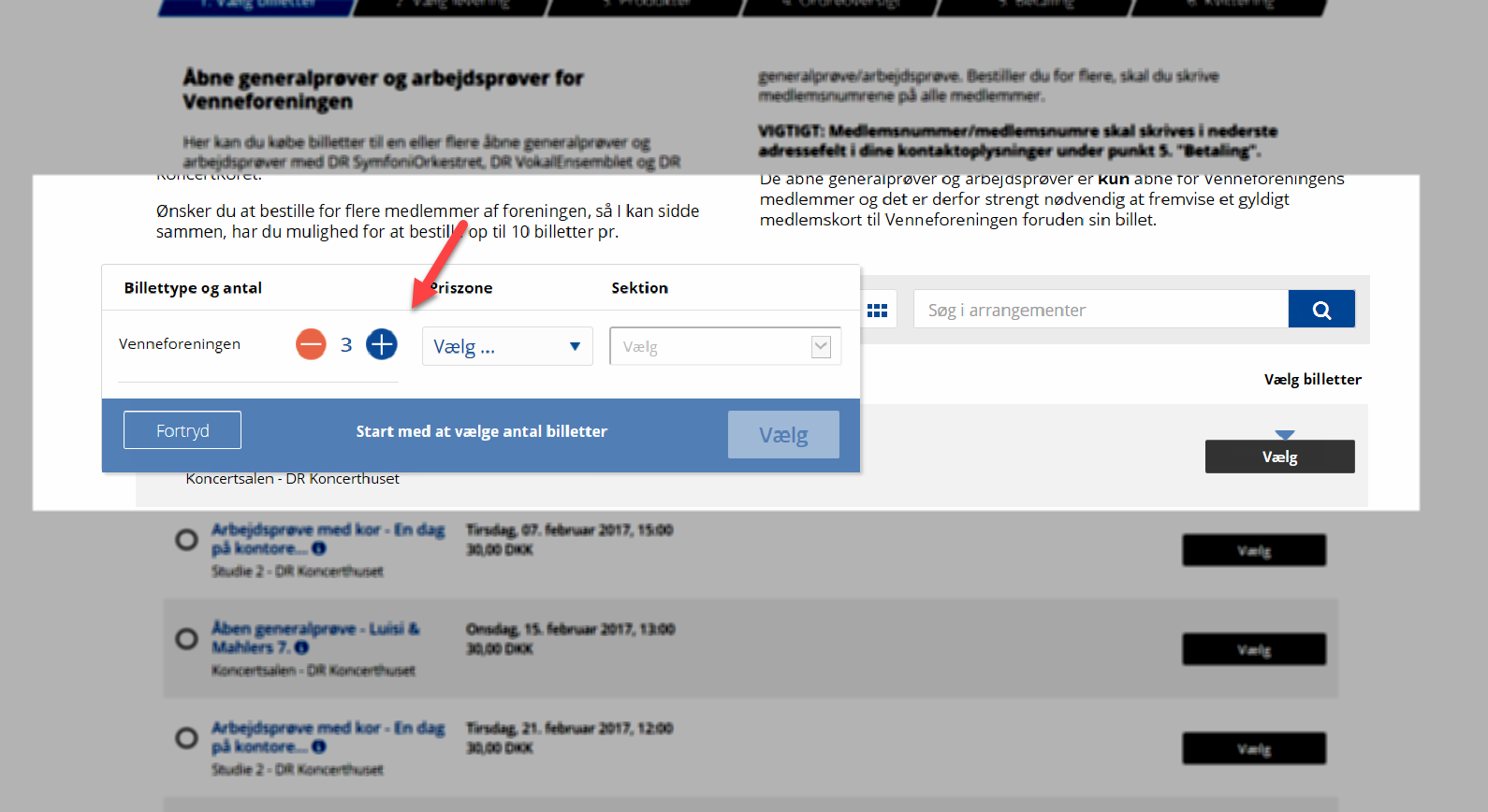 For at bestille billetter skal du klikke på “Køb billet” under Medlemsarrangementer. Herfra kan du købe billetter til alle efterårets arrangementer. Billetsalget vil først være åbent den 11. januar kl. 10.00. dvs. “Køb billet” virker ikke før den 11. januar kl.10.00.