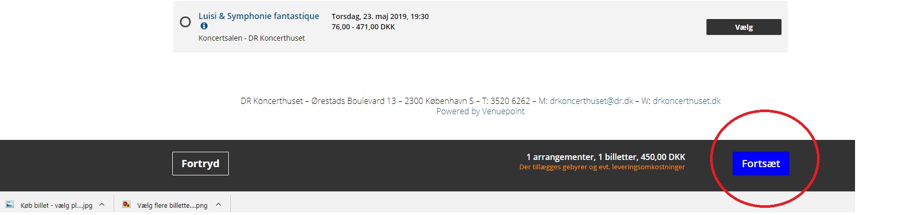 Når du har tilføjet alle billetter du ønsker, klik da på ‘Fortsæt’ nederst på siden.