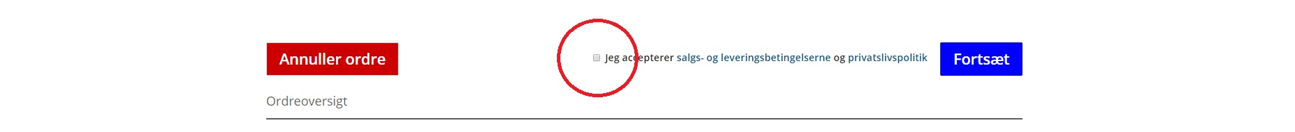 Når alle oplysninger er udfyld, så husk at markere “Jeg accepterer salgs- og leveringsbetingelserne” og tryk derefter på ‘Fortsæt’.