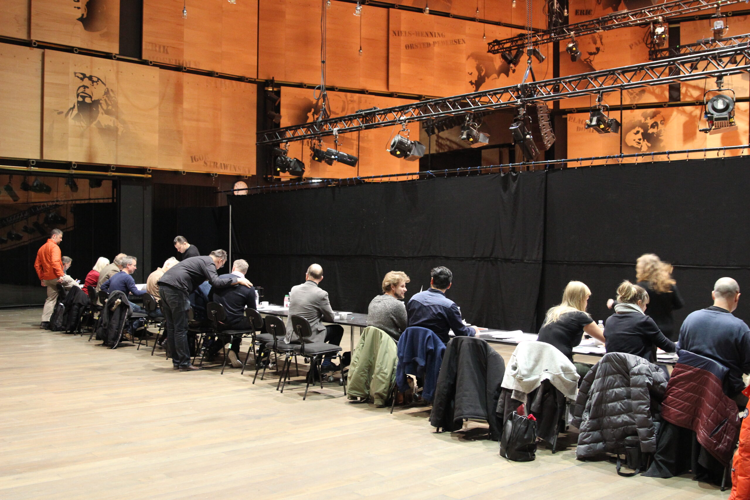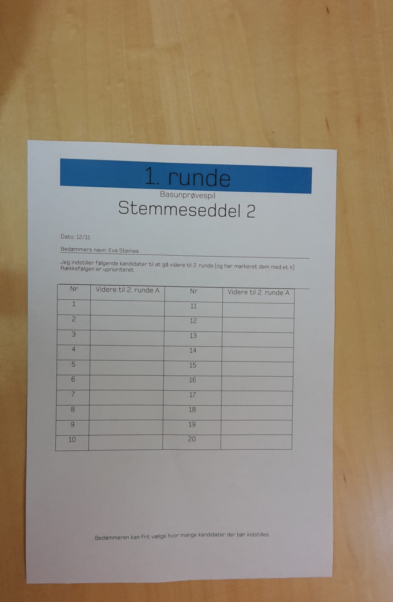 Foran hver af jurymedlemmerne ligger en fortrykt stemmeseddel beregnet til første runde. Selvfølgelig er der også en blyant, og den har en funktion ud over den sædvanlige, forklarer formanden for orkesterforeningens bestyrelse, 1. solopaukist René Mathiesen. Han har ofte siddet i juryen til prøvespil, men et medlem af foreningens bestyrelse er altid tilstede som besidder for kandidaterne. Og så er de naturligvis ikke jurymedlemmer samtidig.