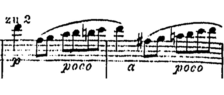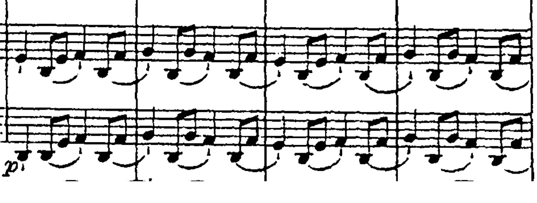 Samspillet mellem fløjte og celli fortsætter, og det stiger i intensitet, indtil violinerne er færdige med at akkompagnere og nu overtager med en abrupt melodisk nedadgående frase: