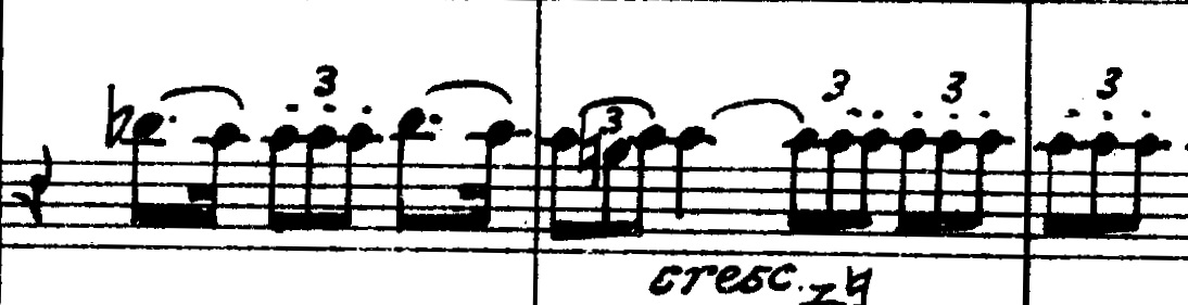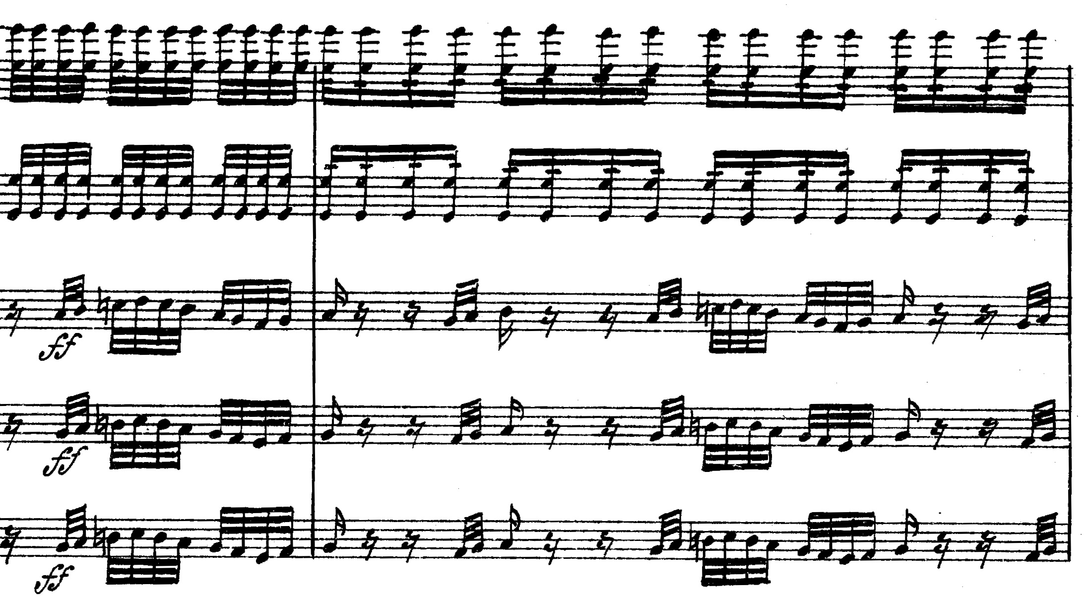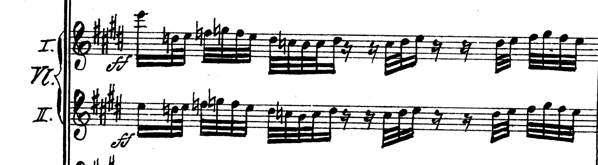 Den rolige og simple melodi fra oboen forsvinder fuldstændigt, nu fylder kun violinerne der spiller komplekse løb: