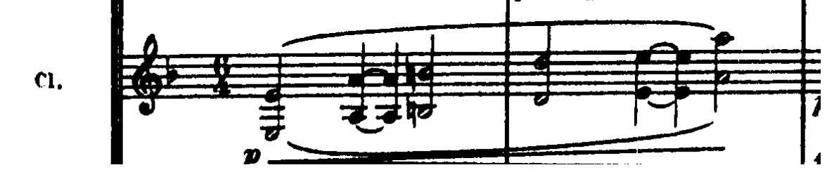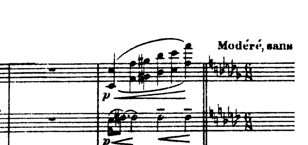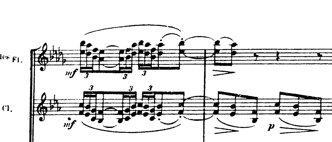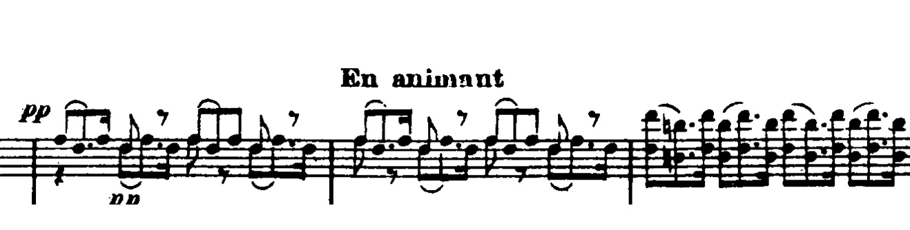 Til at runde introduktionen af, tilføjer Debussy en ny figur, der denne gang er en melodisk opadgående frase. Han spiller først ideen langsomt: