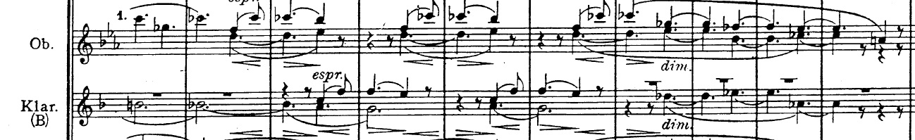 Knap er violinens vatiation overstået, før vi føres direkte over i tema nr. 2, her spillet i oboen: