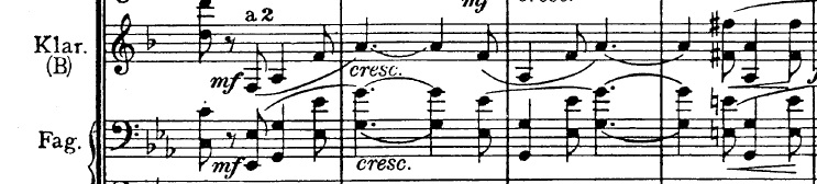 Legen stilner hen, før klarinetten begynder den påny, og denne gang spiller også hornet og fløjten med:
