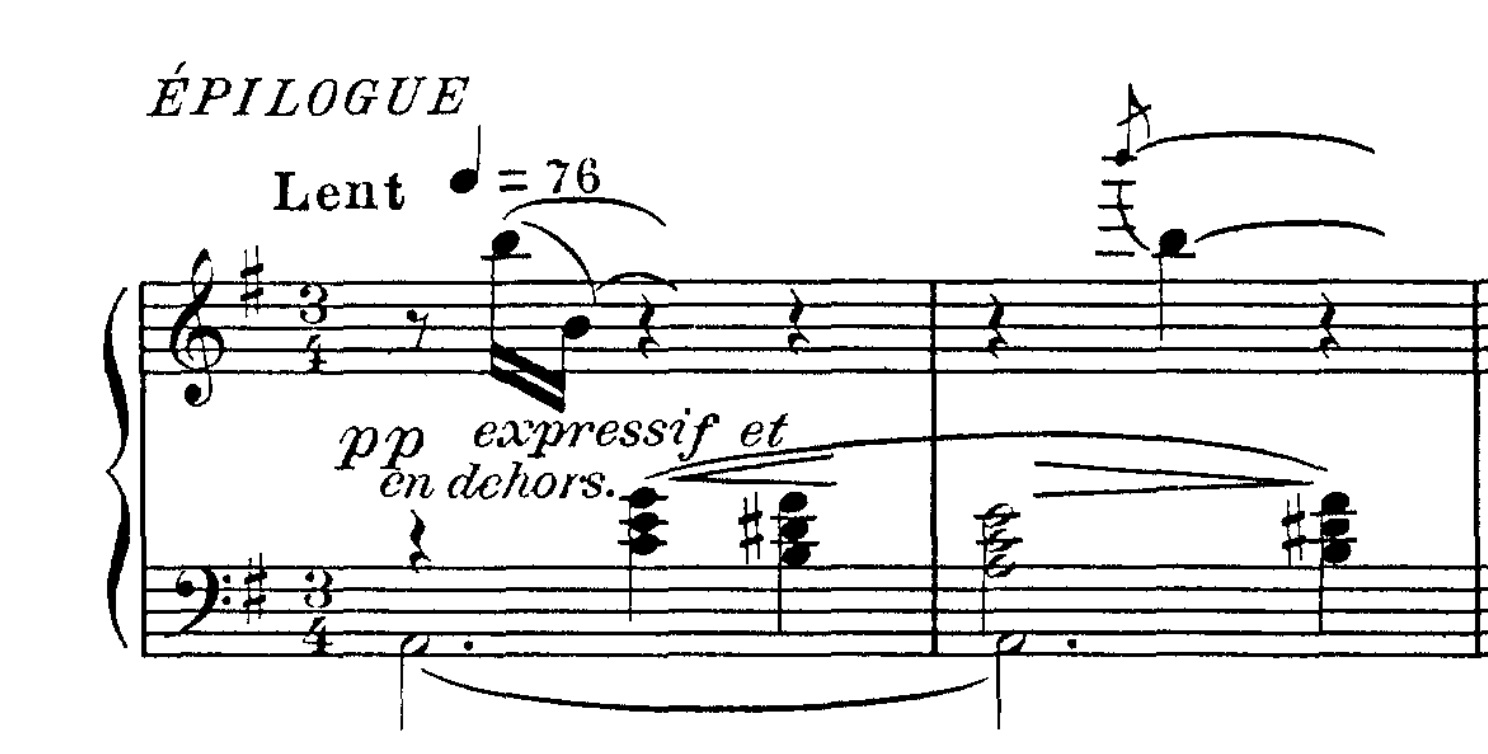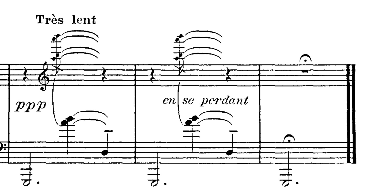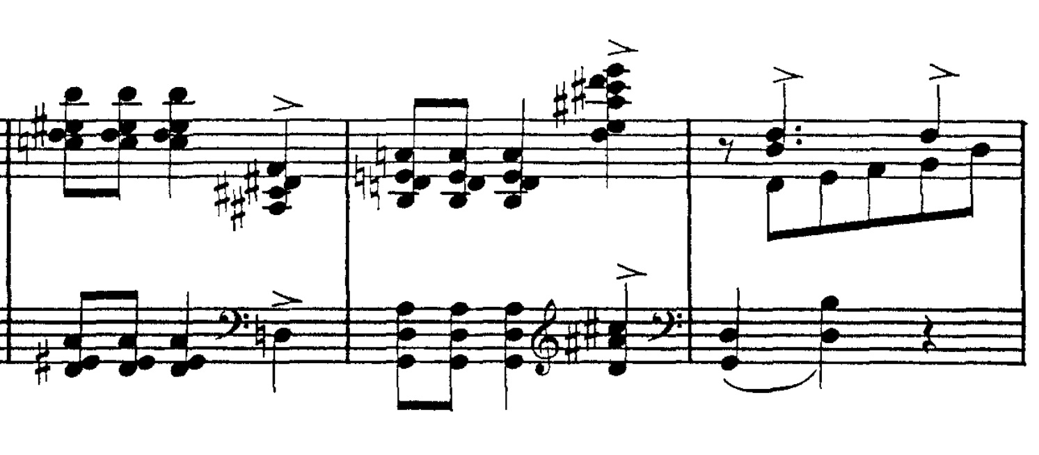 Mod slutningen af den melodiske passage hører vi herefter tre højt stablede akkorder, der derefter føres til afslutning: