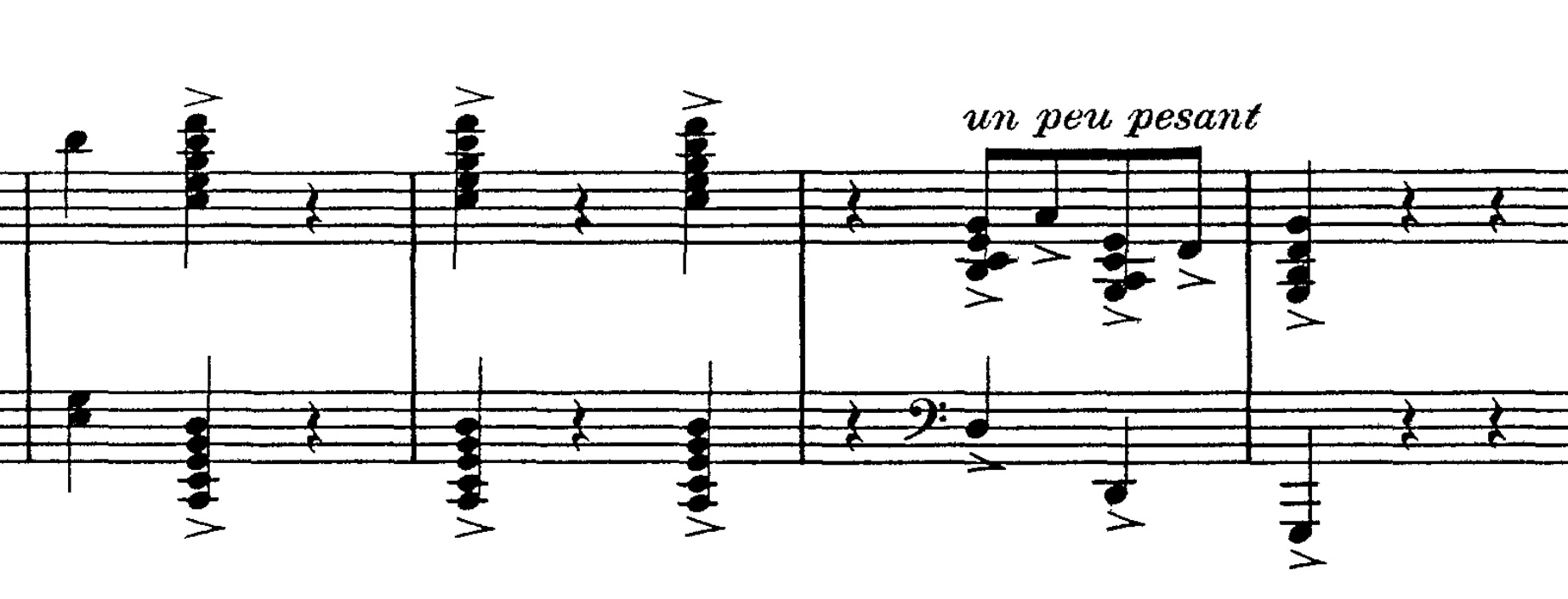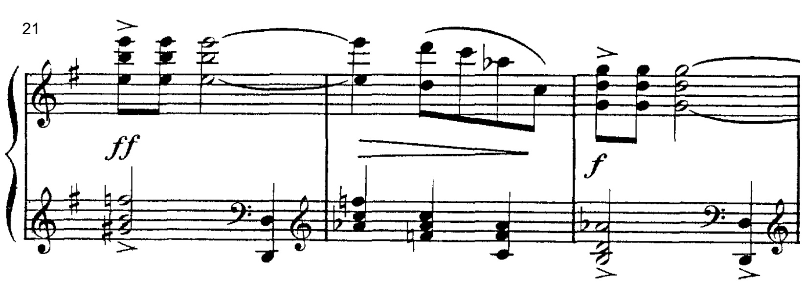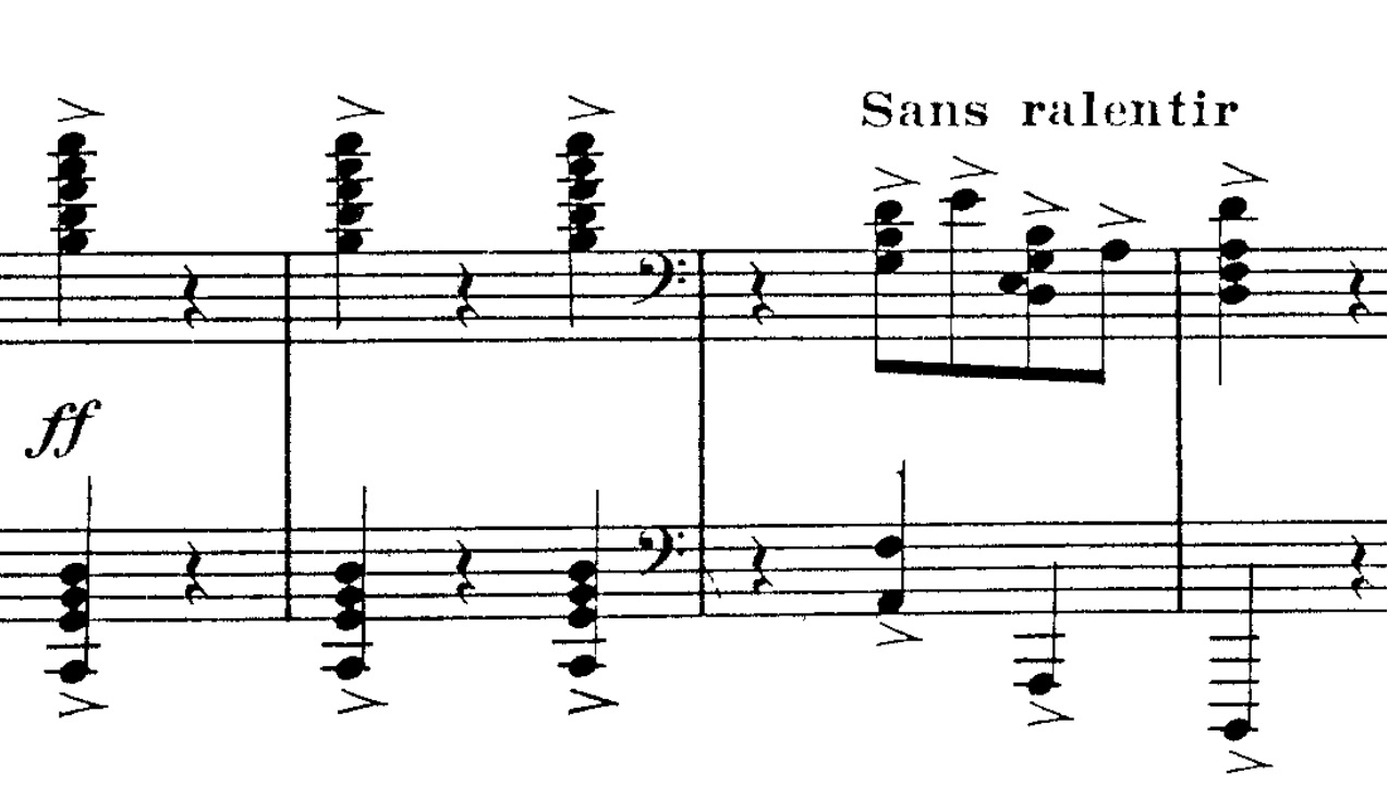 Mod slutningen af den melodiske passage hører vi herefter tre højt stablede akkorder, der derefter føres til afslutning: