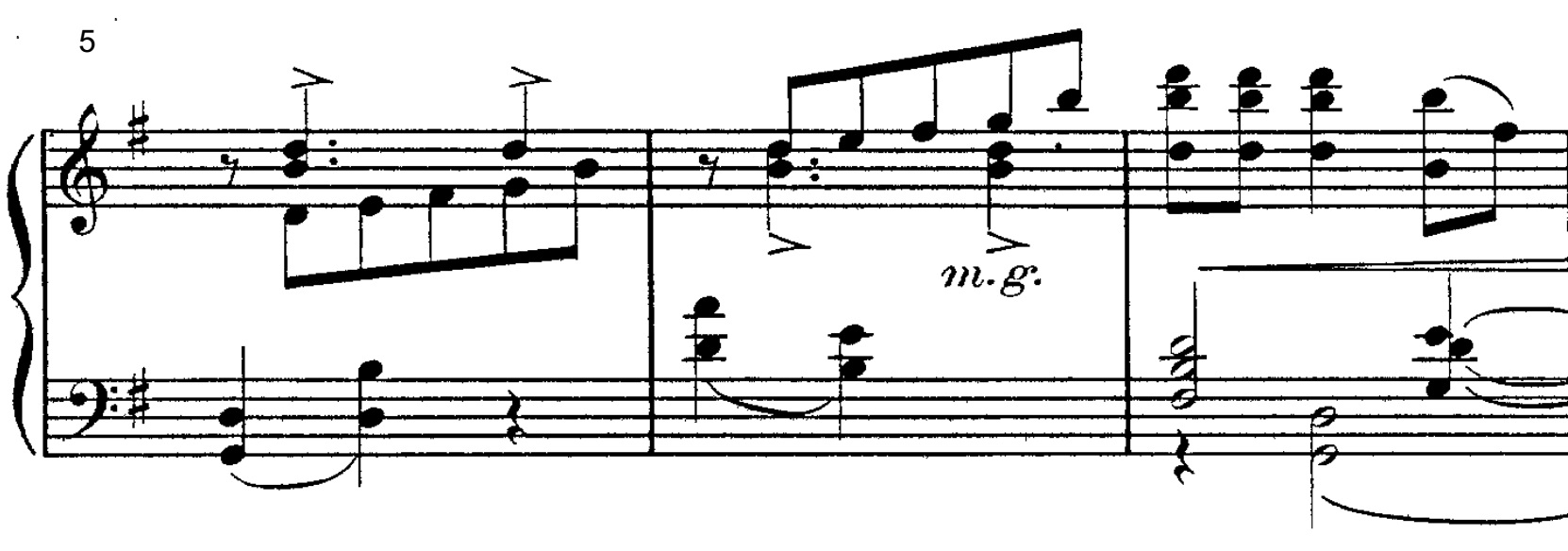 Snart vender vi dog tilbage til det centrale motiv, der denne gang hopper både ned og op til slut og derefter føres direkte over i den melodiske passage fra begyndelsen: