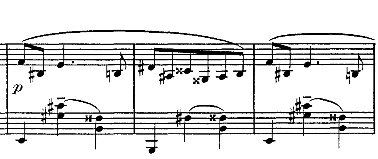 Vi møder nu det centrale motiv igen, denne gang ført over i en melodisk nedadgående passage, en omvending af den vi hørte kort forinden: